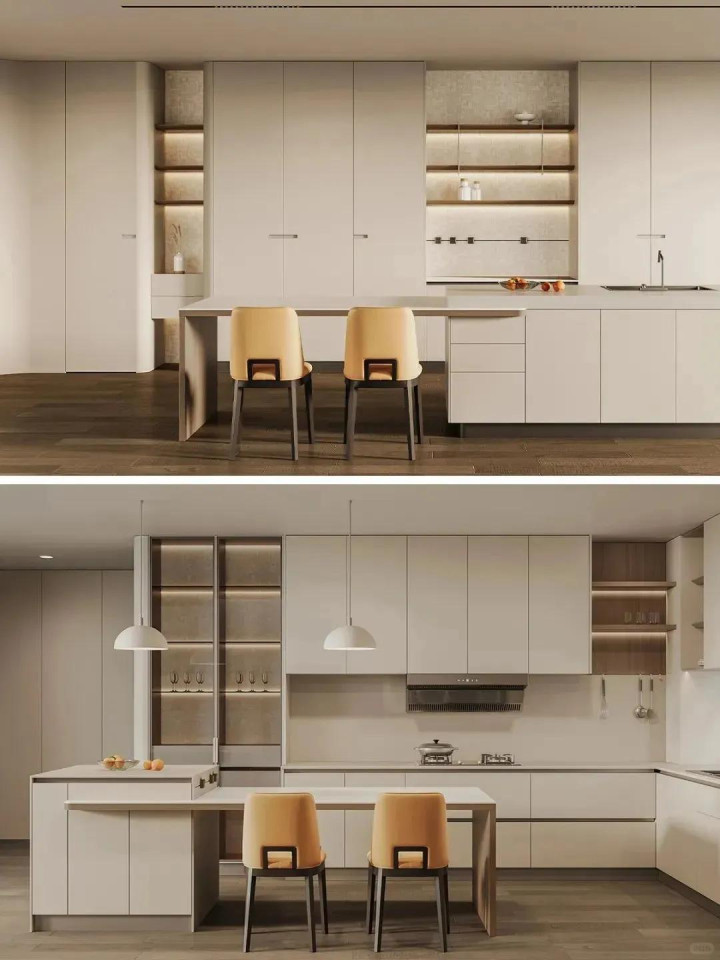 专业方案:一定要做分层照明!基础照明(嵌入式平板灯)+重点照明(吊柜下灯带)+装饰照明(射灯)。切菜区照度要达到150lx以上,色温选4000K中性光最舒服。