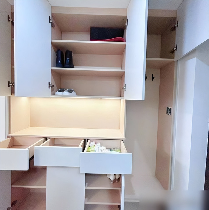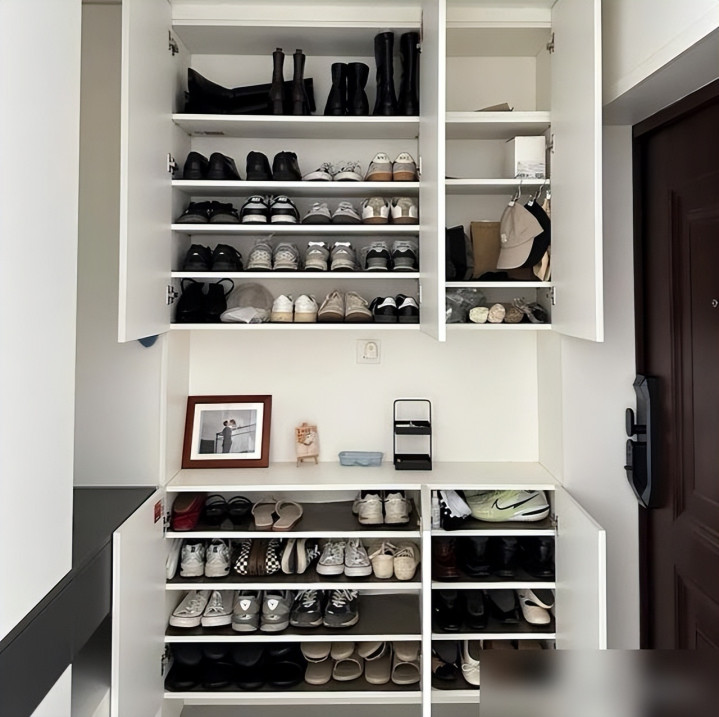 要是做活动层板多好,夏天调低放单鞋,冬天调高放靴子,收纳空间跟着季节“变魔术”,这才叫会过日子!