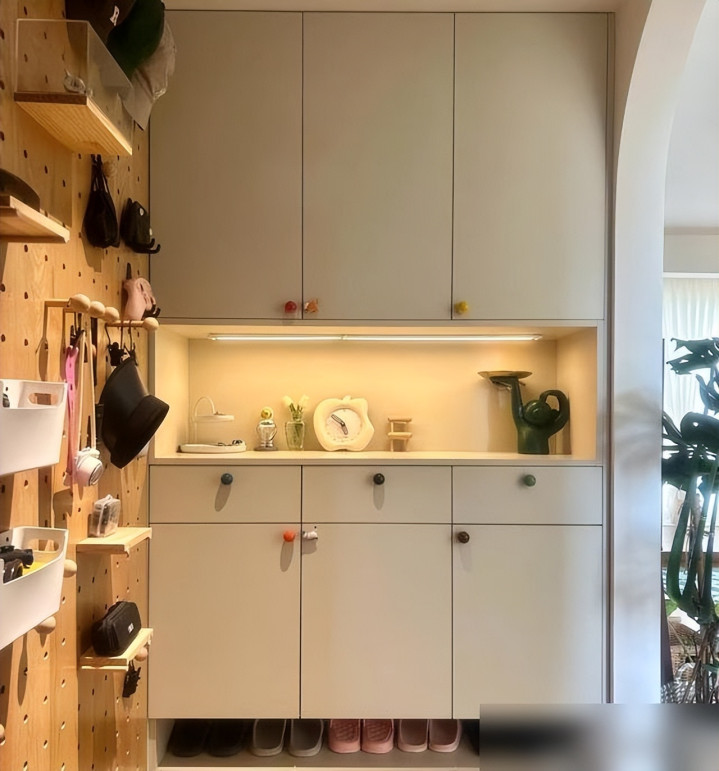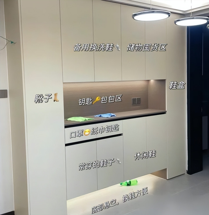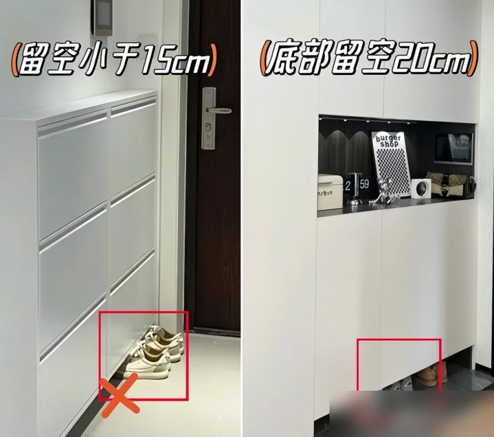 后来才明白,留空得20cm以上才实用,不仅高帮鞋能塞,扫地机器人也能自由穿梭,玄关再也不会乱得像个“鞋堆”,这尺寸真是“早知道早省心”。