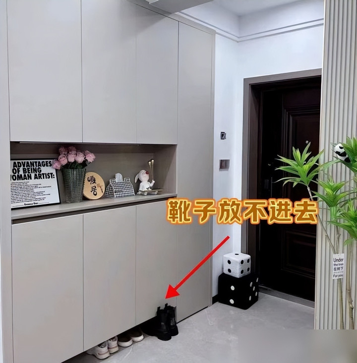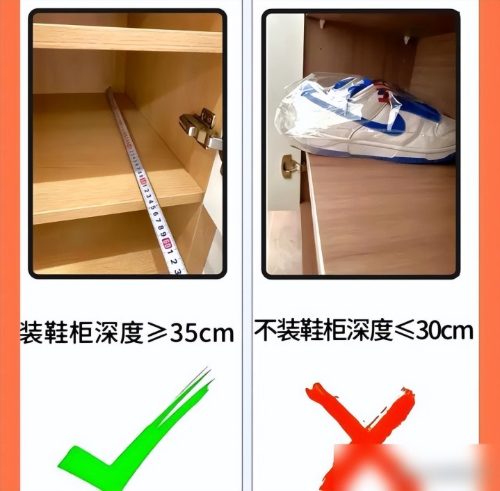 有次去朋友家,她的鞋柜深度35cm,厚棉鞋、运动鞋都能整整齐齐放进去,我瞬间后悔——好看真不如实用,深度不够等于白装一半!
